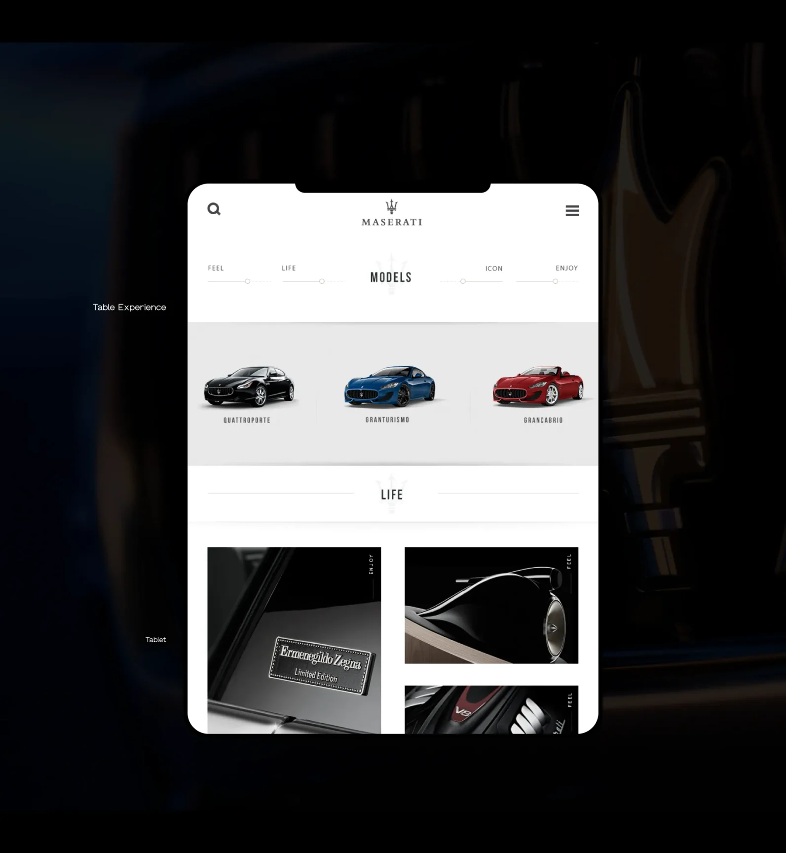 Maserati's corporate website blends history, tradition, craftsmanship, and elegance, presenting their full range and rich brand heritage. It's an exquisite journey through automotive artistry.